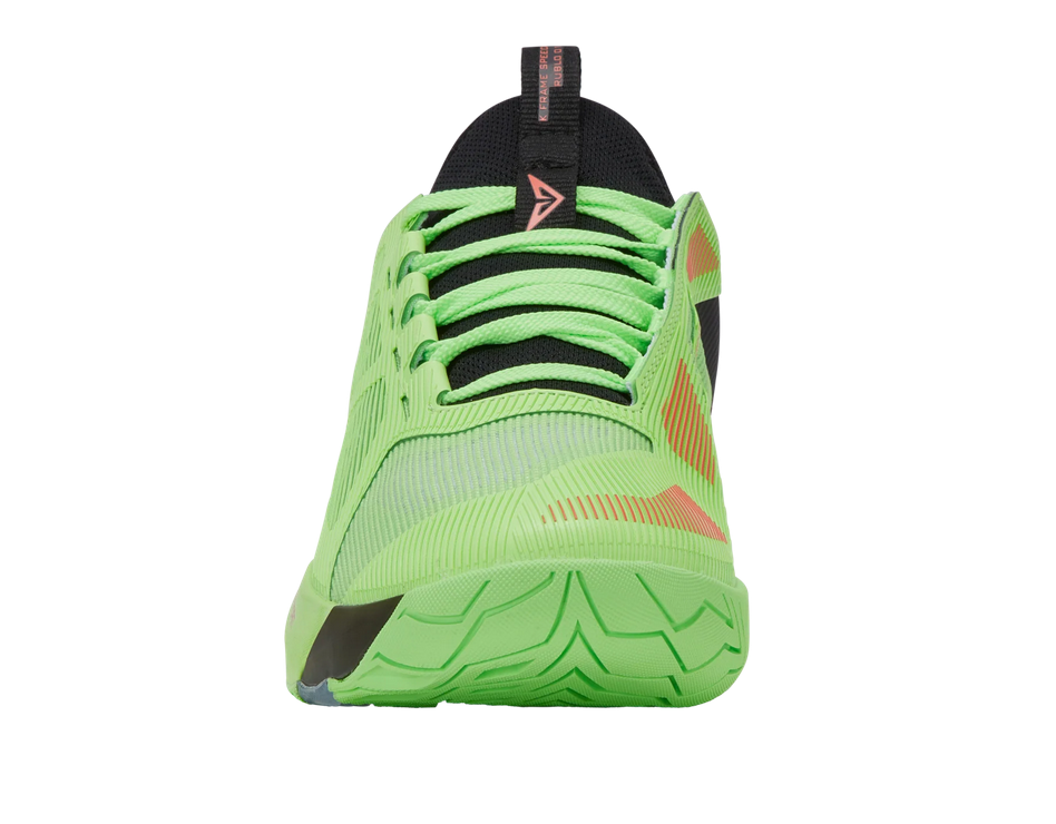 Le K-Frame Speed Rublo, co-conçu avec Andrey Rublev, comprend un K-Frame en TPU pour la stabilité de l’avant-pied, une semelle intercalaire Hyper Foam pour le retour d’énergie et une tige Duraprint légère pour la respirabilité et la durabilité.